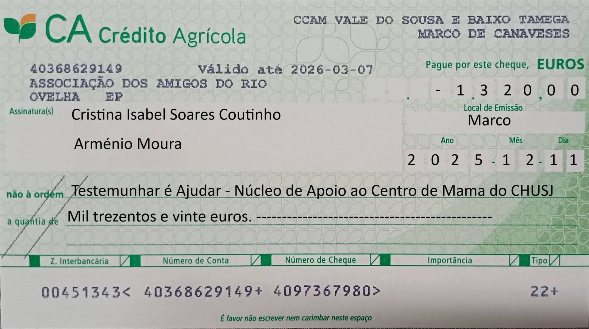 A AARO – Associação dos Amigos do Rio Ovelha entregou à Associação Testemunhar É Ajudar – Núcleo de Apoio ao Centro da Mama do Centro Hospitalar Universitário de São João, o valor angariado na iniciativa Rota Abrigo de Montanha – Caminhada Solidária pelo Cancro da Mama, que decorreu no passado dia 23 de novembro.