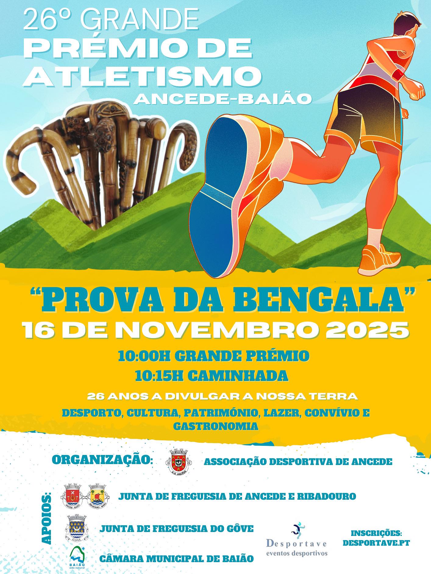 O desporto e a tradição voltam a cruzar-se em Ancede, Baião, no próximo dia 16 de novembro de 2025, com a realização da 26.ª edição do Grande Prémio de Atletismo de Ancede, conhecido carinhosamente como a “Prova da Bengala”.