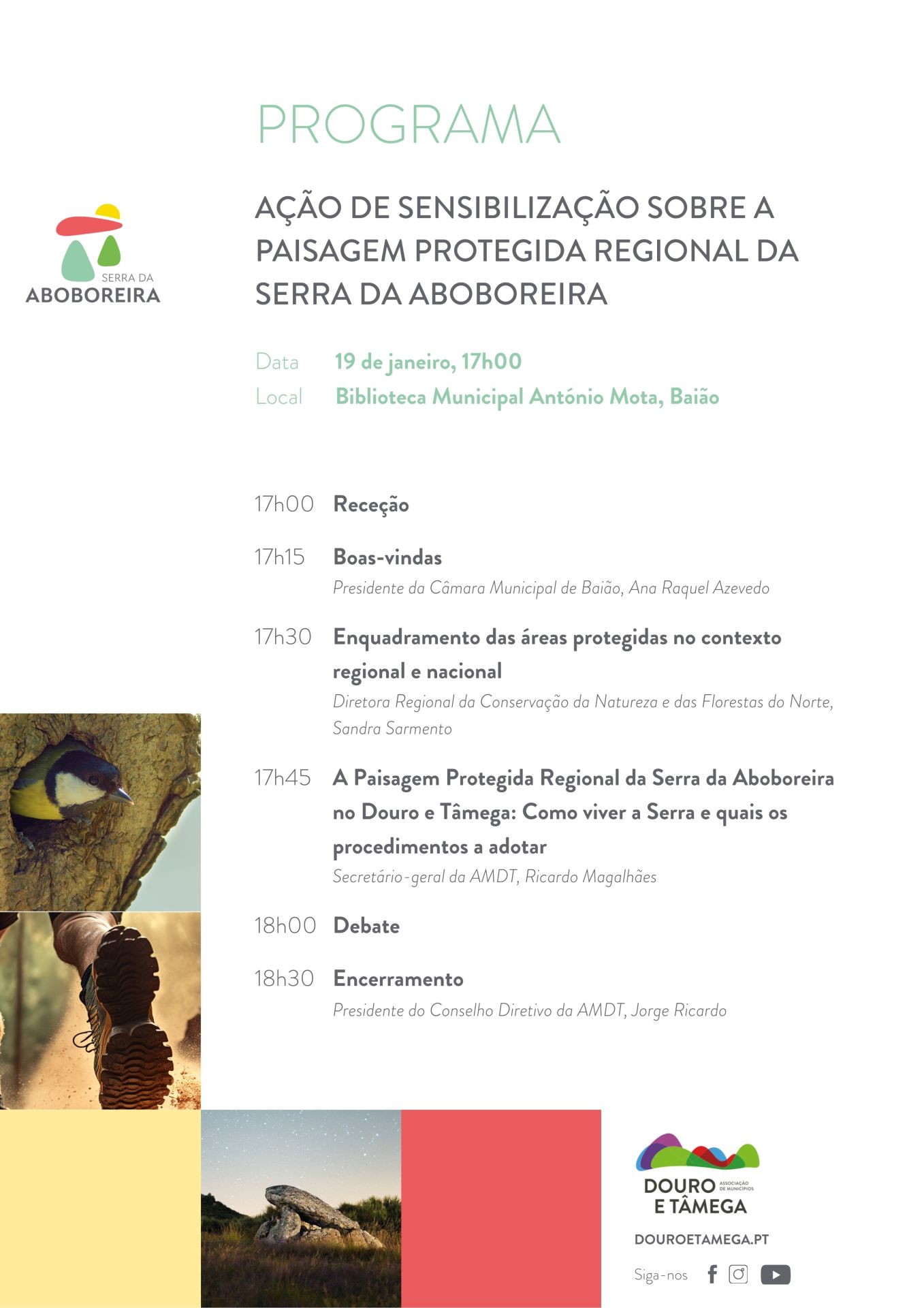 O secretário-geral da AMDT, Ricardo Magalhães, abordará o tema “A Paisagem Protegida Regional da Serra da Aboboreira no Douro e Tâmega: como viver a Serra e quais os procedimentos a adotar”, num momento de esclarecimento e proximidade com a população.