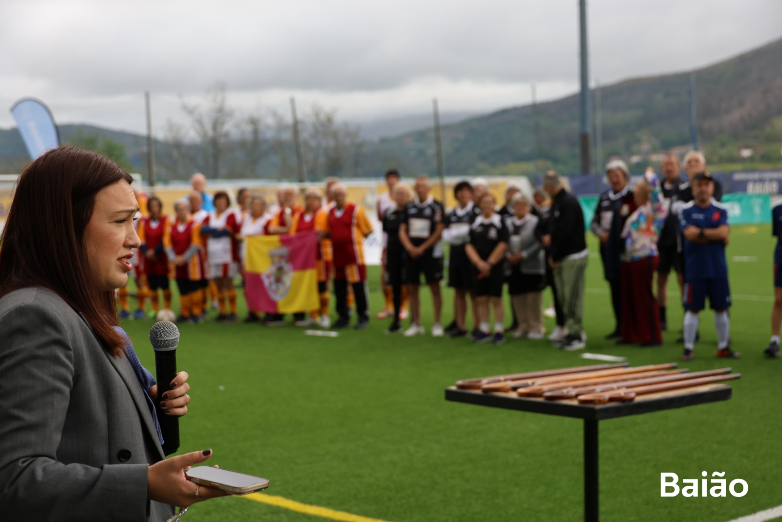 A receção às equipas esteve a cargo da Presidente da Câmara Municipal de Baião, Ana Raquel Azevedo, que expressou a sua satisfação pela realização da etapa no concelho e ressaltou a relevância destas iniciativas: “É com enorme satisfação que recebemos em Baião esta etapa da Liga Walking Football. Este é um exemplo claro de como o desporto pode promover a saúde, o bem-estar e o convívio entre gerações, reforçando os laços entre comunidades.”