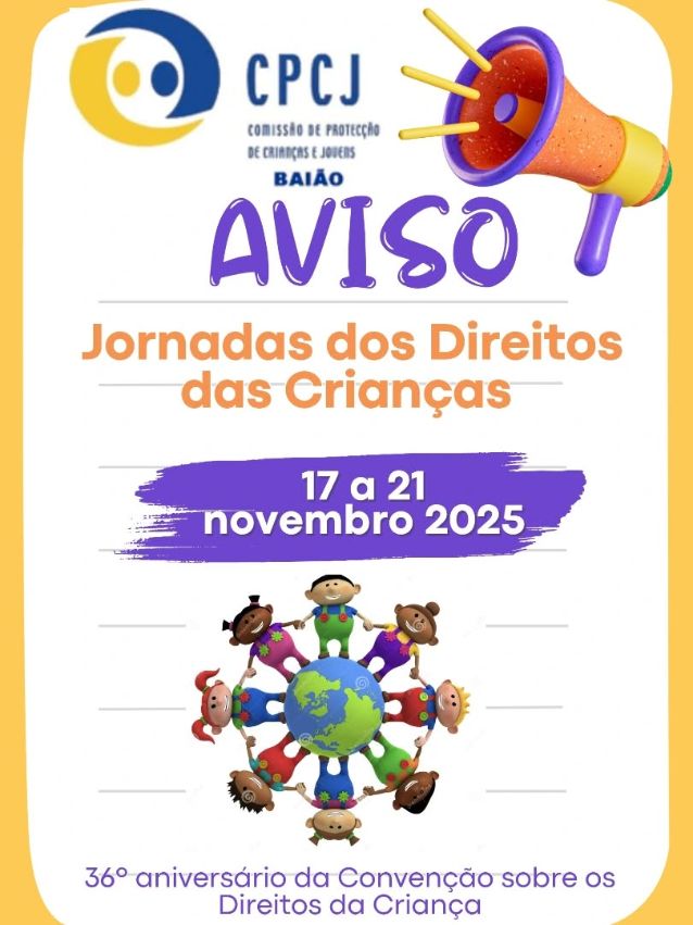 No próximo dia 20 de novembro, Portugal assinala um marco histórico: 36 anos desde a ratificação da Convenção sobre os Direitos da Criança. Para comemorar esta data, a Comissão de Proteção de Crianças e Jovens (CPCJ) de Baião está a organizar as Jornadas dos Direitos das Crianças, que decorrerão entre 17 e 21 de novembro.