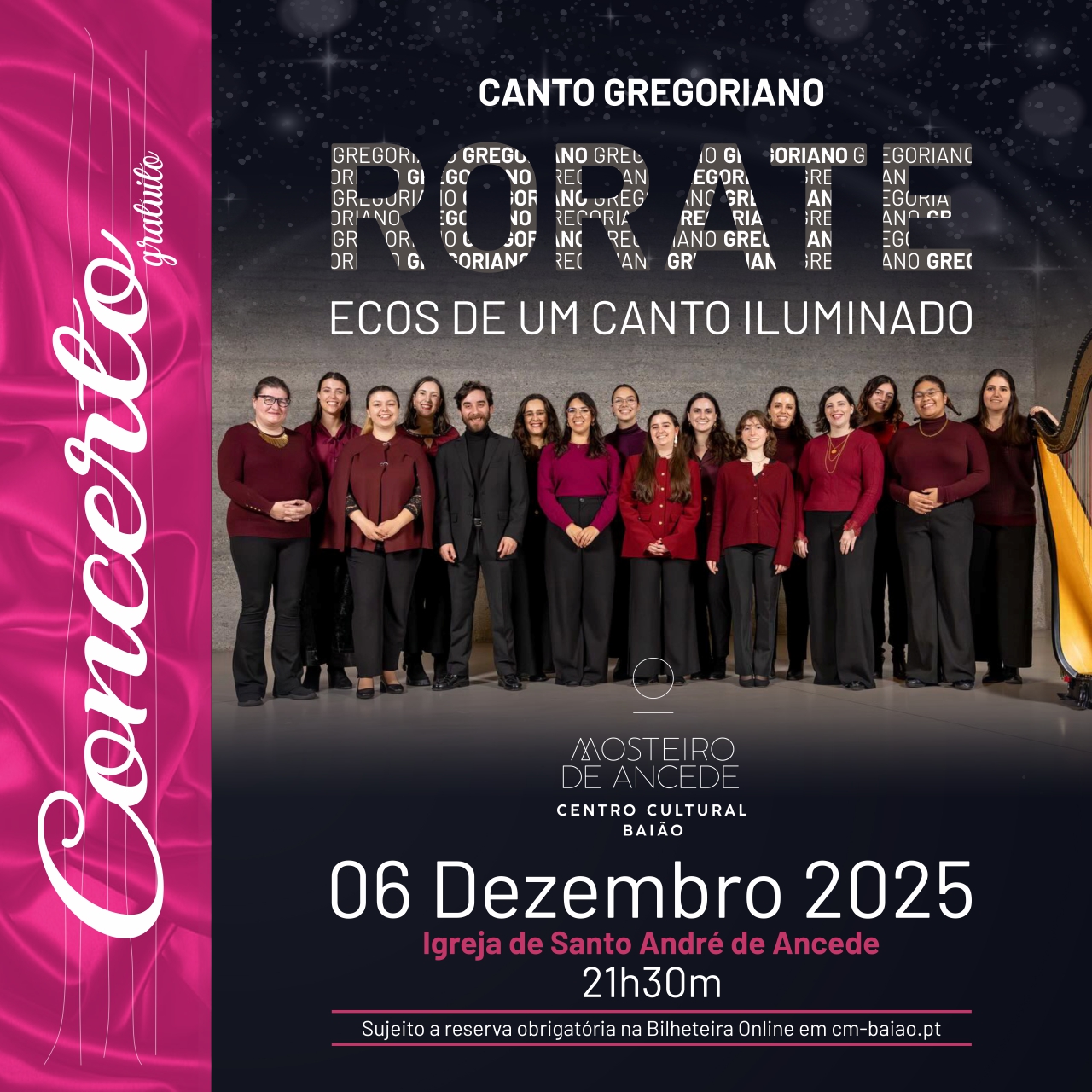 A Igreja de Ancede será palco, no próximo dia 6 de dezembro, às 21h30, de um espetáculo de Canto Gregoriano intitulado “Rorate – Ecos de um Canto Iluminado”. A interpretação ficará a cargo da Schola Cantorvm Colegiada de Cedofeita, conjunto reconhecido pela qualidade artística e pelo trabalho contínuo de valorização da Música Sacra.