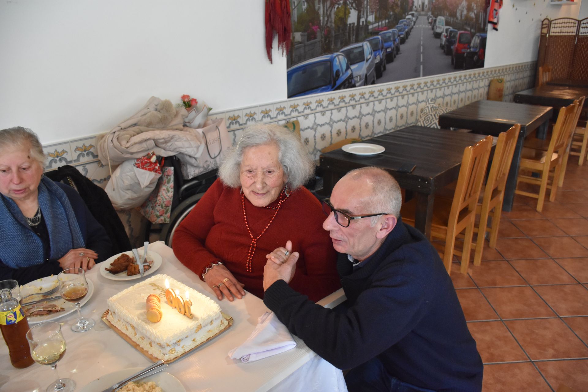 Ilíria Edite Alda Varejão completou hoje um século de vida, uma data rara e marcante celebrada no restaurante “Tasquinha do Vale”, em Ervins, Ovil.