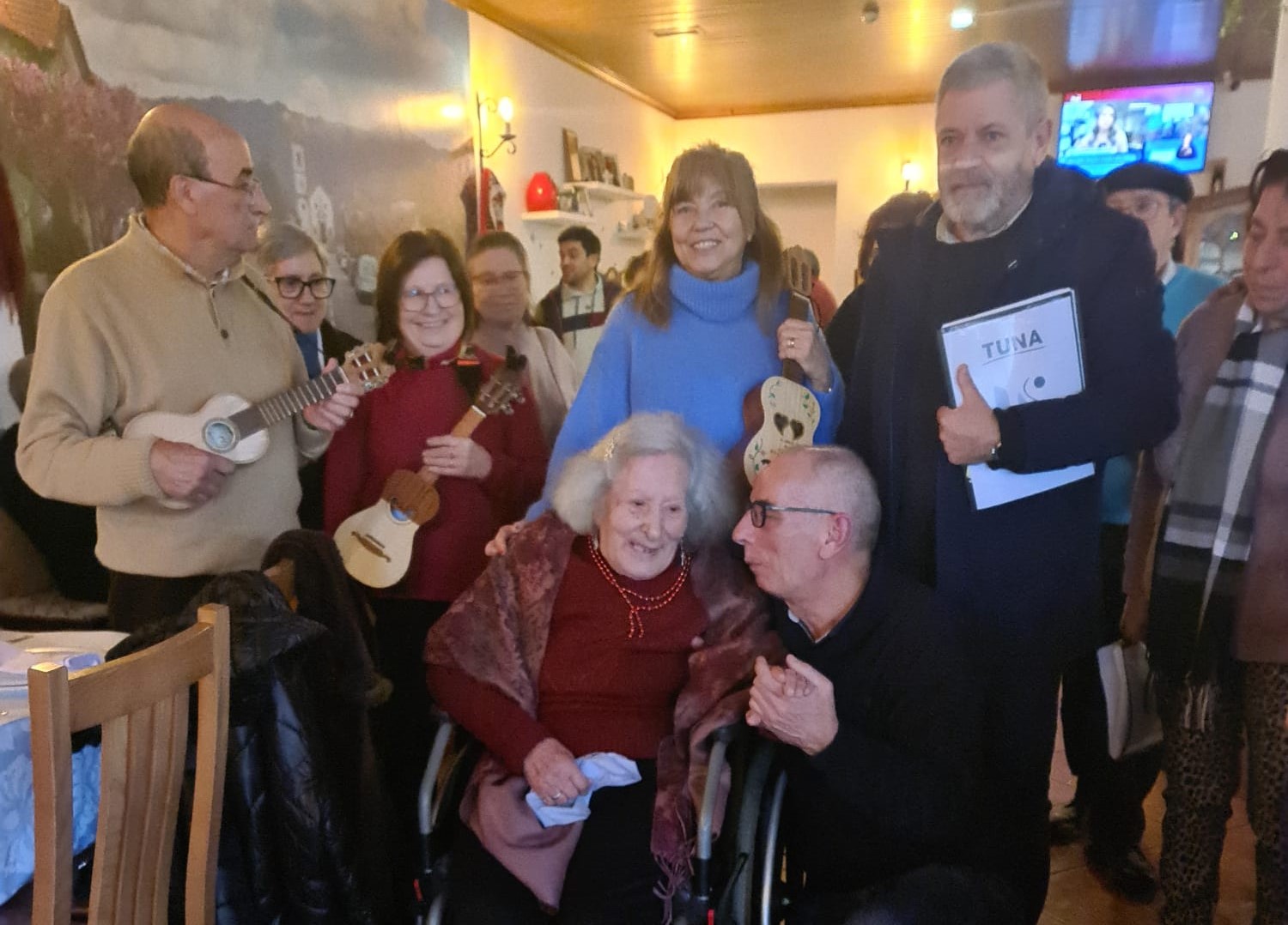 Antes da nossa passagem pelo restaurante, importa salientar a presença da vereadora da Coesão Social e Habitação da Câmara Municipal de Baião, Olívia Mendes, que se associou a este momento especial, acompanhada pela Tuna da Universidade Sénior de Baião, que brindou a aniversariante com a tradicional canção dos parabéns, num gesto carregado de simbolismo, alegria e proximidade comunitária.