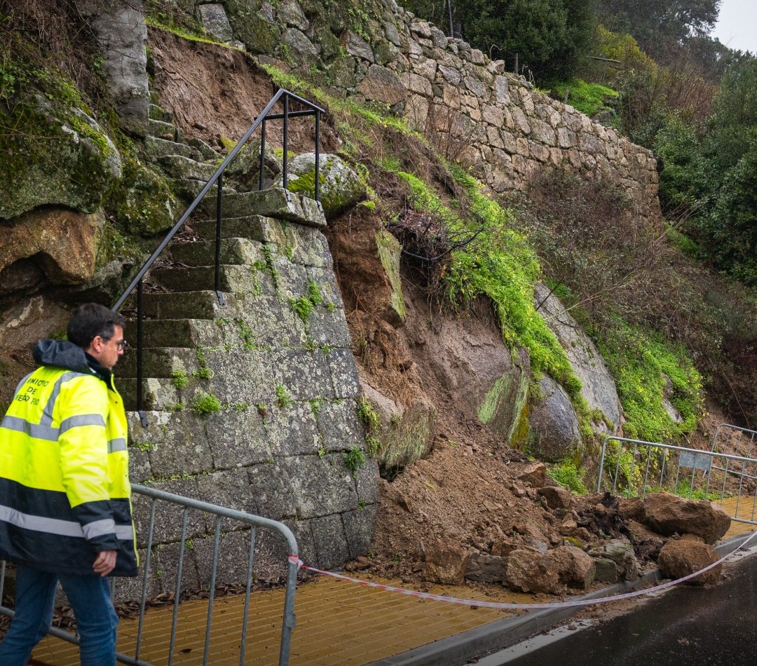 A precipitação intensa e persistente, aliada à instabilidade dos terrenos, originou quedas de muros de suporte, deslizamentos de terras e derrocadas, colocando em risco a segurança de pessoas e bens.