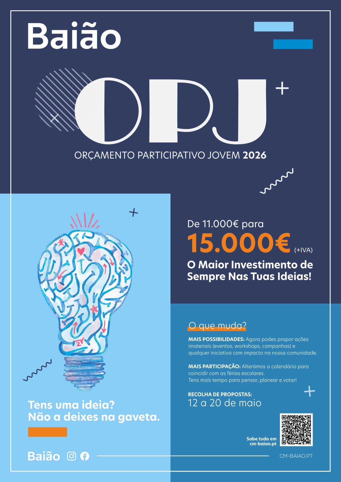 Com a edição de 2026 do Orçamento Participativo Jovem, o Município de Baião "reforça o seu compromisso com a participação da juventude nas decisões locais, contribuindo para uma comunidade mais participativa, inclusiva e orientada para o futuro".