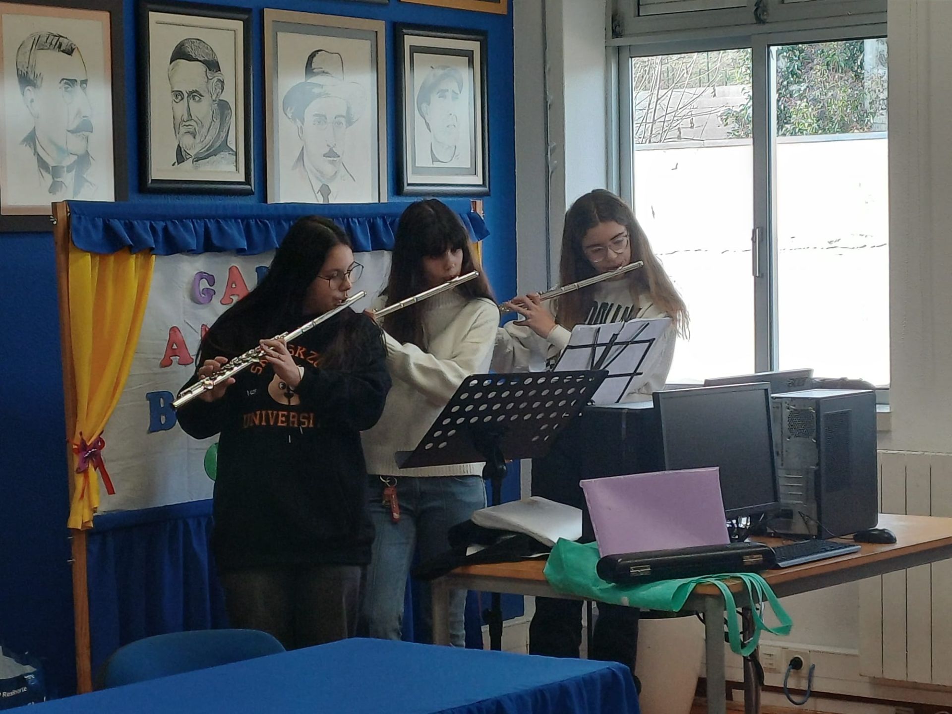 Após a palavra de boas-vindas, três alunas do agrupamento proporcionaram um momento musical, interpretando duas peças em flauta transversal, que conferiram especial beleza e solenidade à sessão. Seguiu-se a apresentação do convidado, realizada por um grupo de alunos, que destacou aspetos biográficos e o percurso político de Francisco Sousa Vieira, marcado por uma forte participação cívica e associativa desde cedo.