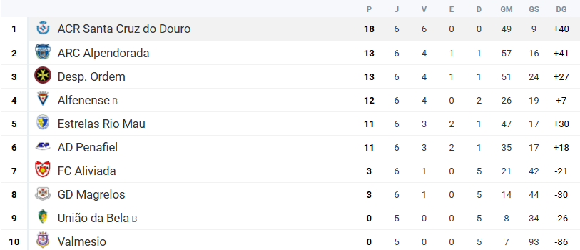 Ainda assim, mesmo que esse cenário não se concretize, a equipa de Santa Cruz do Douro continua a depender apenas de si e poderá confirmar matematicamente o título logo na jornada seguinte, novamente em casa, frente ao mesmo Alfenense ‘B’.